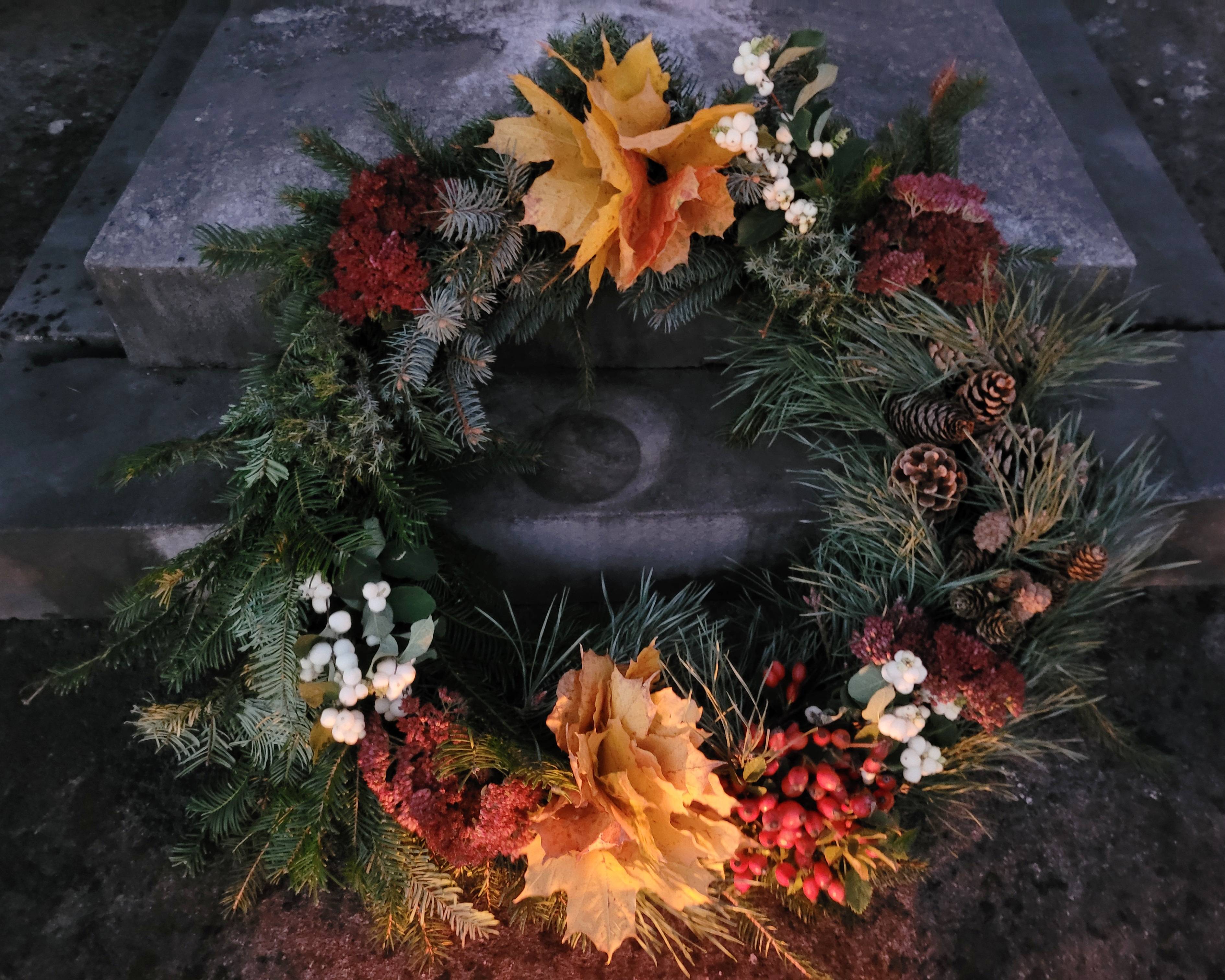 Letošním rokem bychom chtěli započít tradici novou. Rádi bychom tvorbu věnce dali na starost vždy jednomu z místních spolků. Pro rok 2025 jsme o něj poprosili členy oddílu Klubu českých turistů z Mnichova Hradiště.