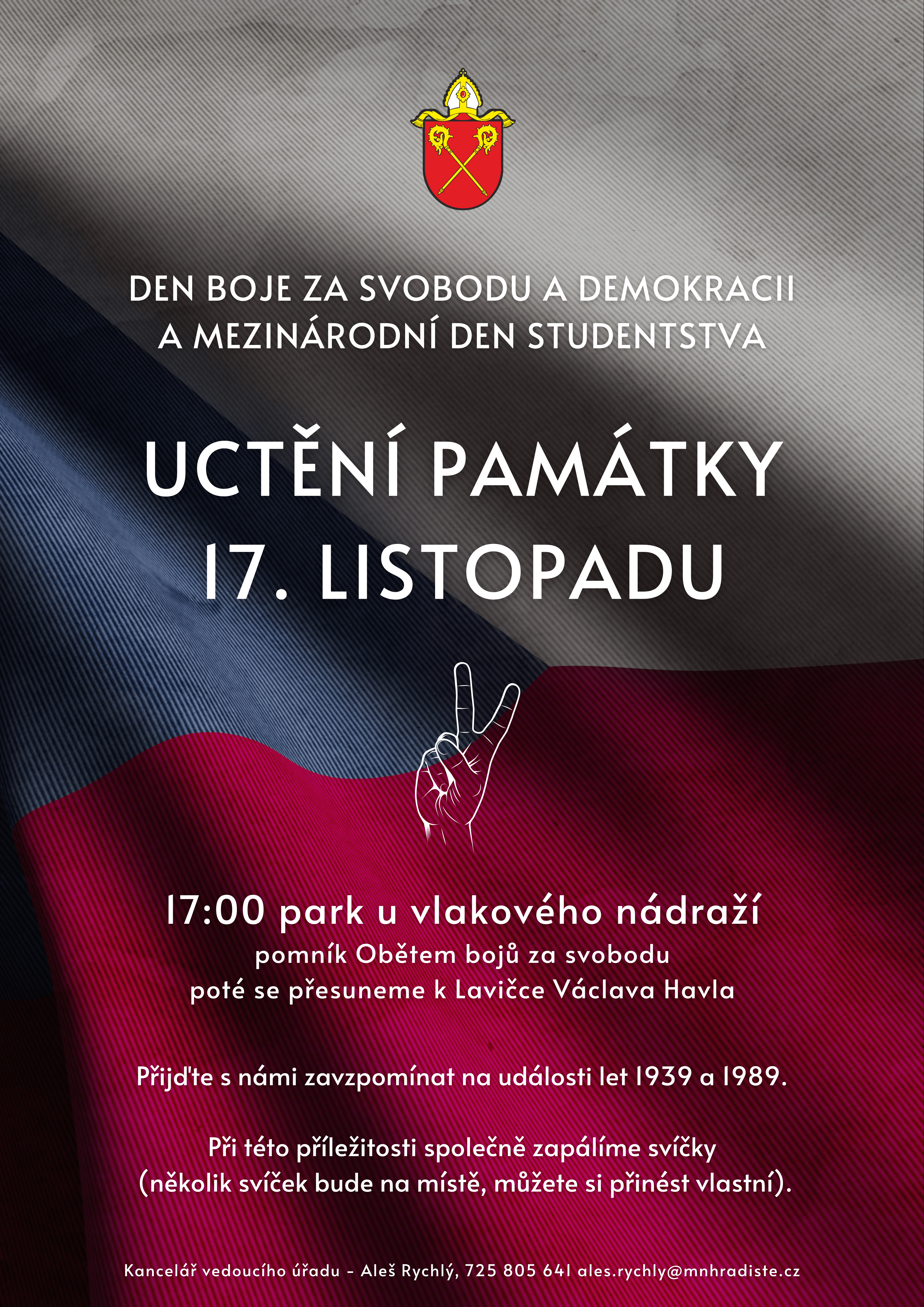Den boje za svobodu a demokracii a Mezinárodní den studentstva si každoročně připomíná také Mnichovo Hradiště. V neděli 17. listopadu se můžete v parku u nádraží zúčastnit uctění památky 17. listopadu u pomníku Obětem bojů za svobodu nebo u lavičky Václava Havla. Na obou místech můžete zapálit svíčku.