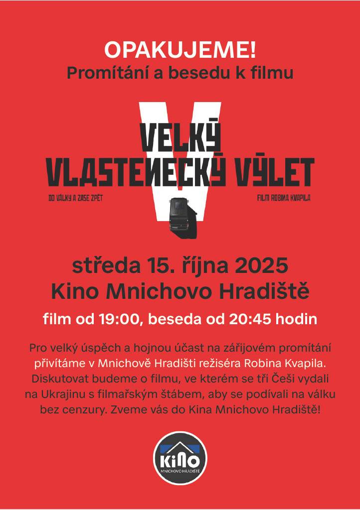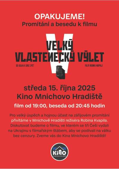 Dnes od 19 hodin můžete přijít do kina na druhou a poslední projekci dokumentu o válce na Ukrajině. Po filmu (kolem 20.45 h) proběhne beseda s režisérem Robinem Kvapilem. Využijte možnost film nejen vidět, ale pohovořit si o něm s přímými účastníky natáčení. Těšíme se na vás!