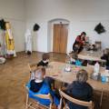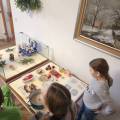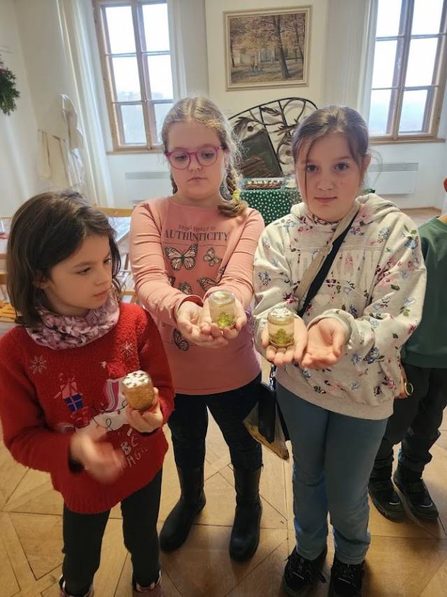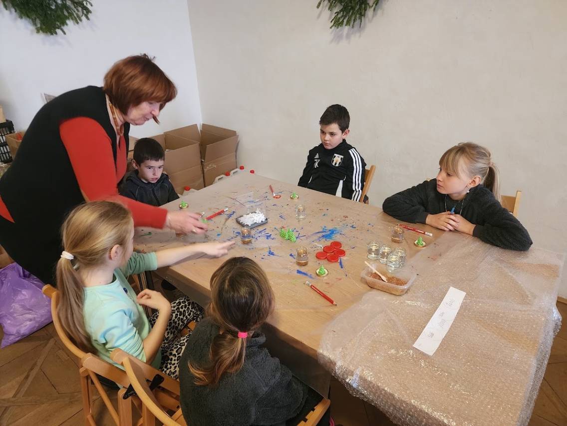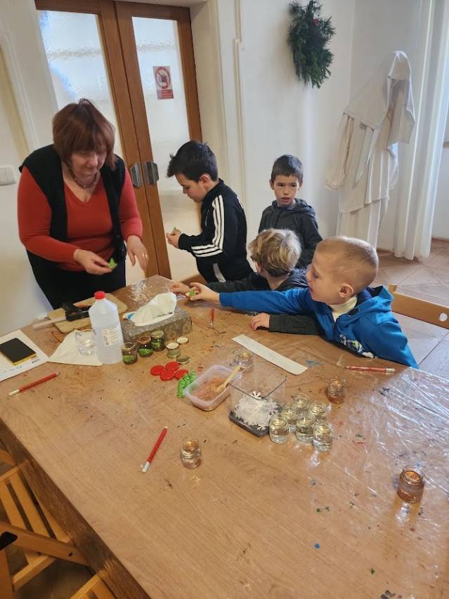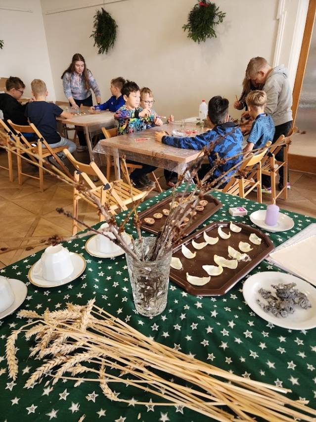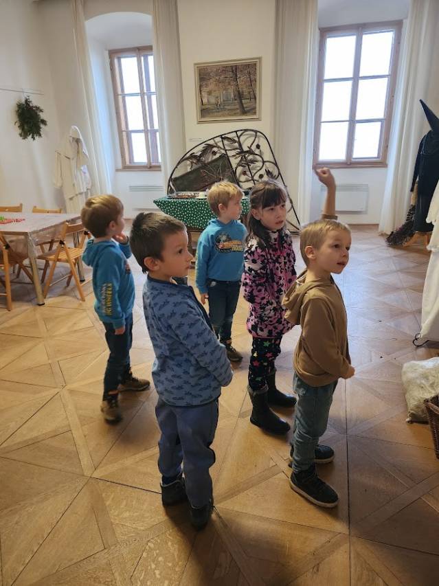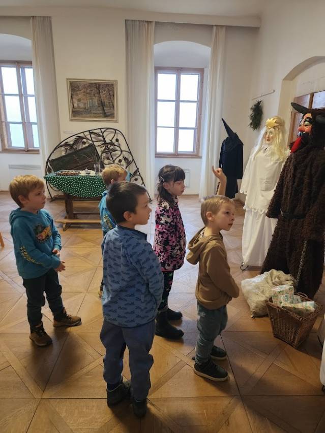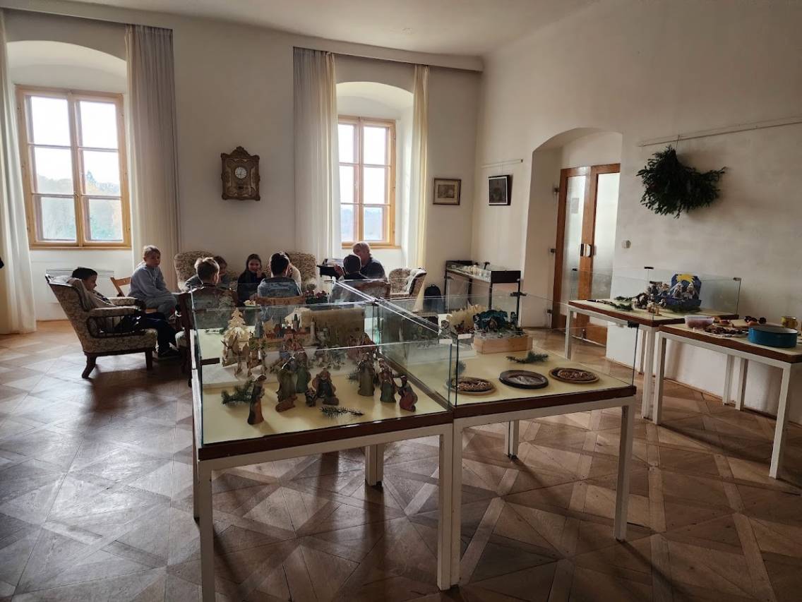 Na tomto stanovišti jsme se věnovali vánočním zvykům a tradicím. U čaje a vánočky jsme si s dětmi povídali o tom, jak lidé zimní období prožívali dříve, děti se setkaly s hudbou Jiřího Ignáce Linky z Bakova nad Jizerou a někdy si společně i nacvičily koledu, prohlédly vystavené betlémy zhotovené různými technikami a nazdobený vánoční stromeček. Pro atmosféru jsme zapálili i voňavé františky. Tato klidná část programu byla u dětí oblíbená.