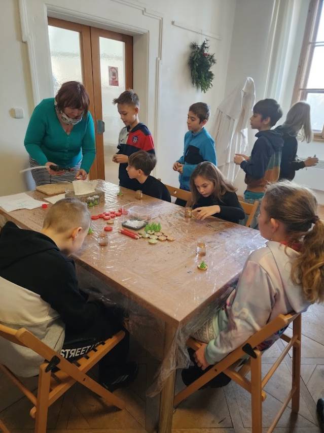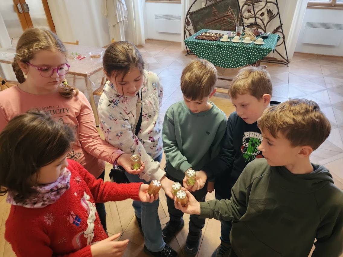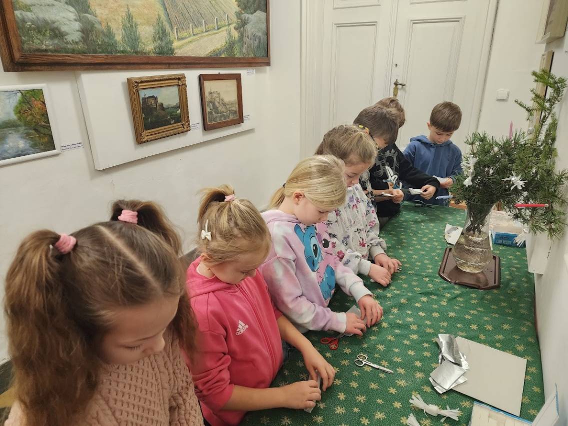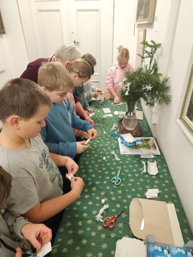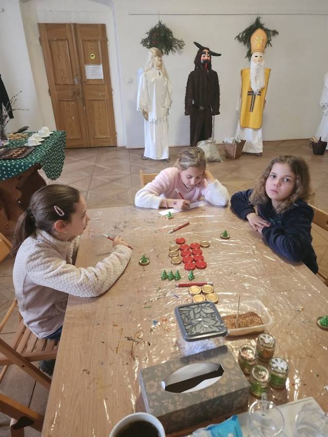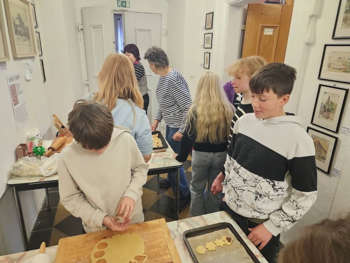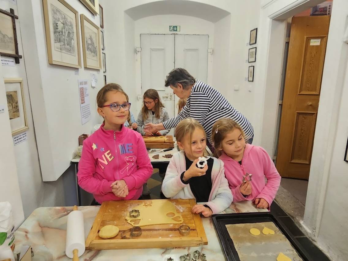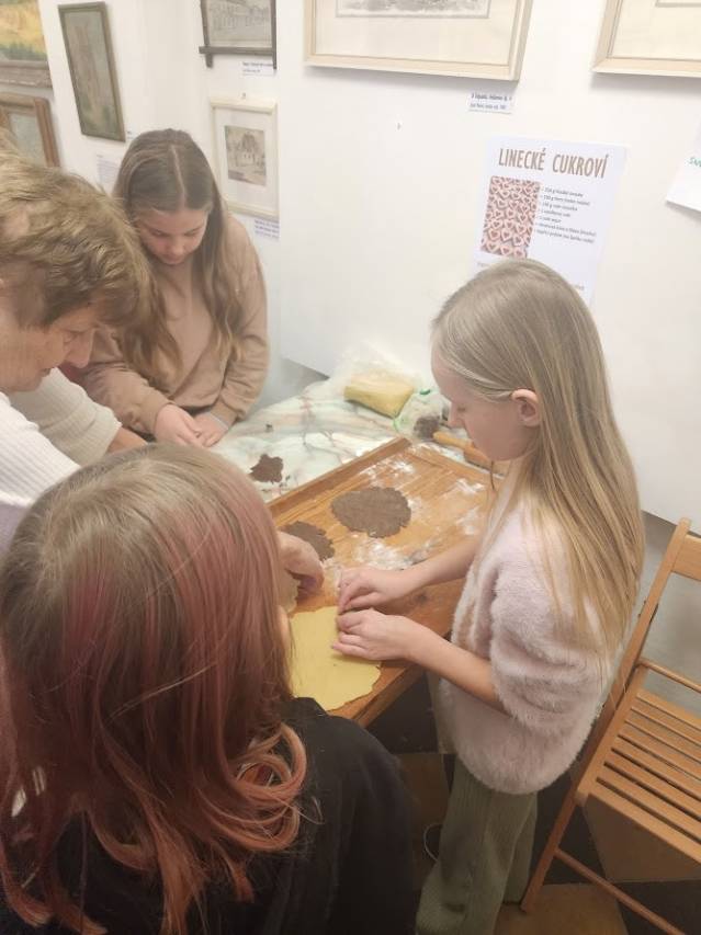 Tam, kde se peče, to krásně voní. Děti připravovaly linecké cukroví, takže si vlastnoručně vyzkoušely tradiční předvánoční pečení. Vůně se linula celým muzeem a navodila tu pravou adventní náladu. Zatímco se cukroví peklo, povídali jsme si o zdobení vánočních stromků v minulosti i dnes a děti vyráběly drobnou ozdobičku na stromek.