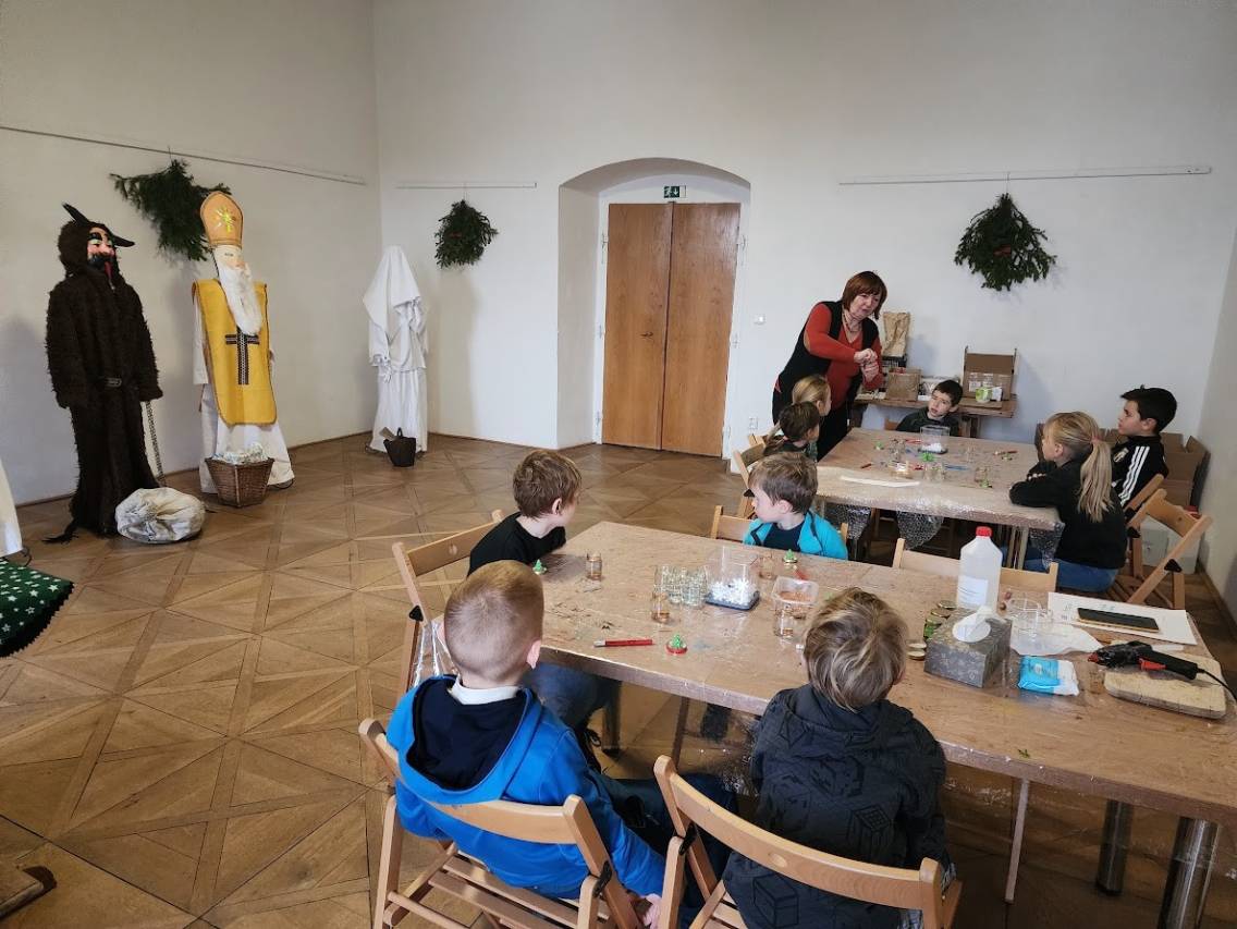 Jakmile se přiblížil advent, muzeum v Mnichově Hradišti se proměnilo v živé a voňavé místo plné dětského smíchu. Každé dopoledne v listopadu a prosinci k nám totiž přicházela jedna třída za druhou a účastnila se dvouhodinového programu – nejprve od osmi hodin, poté od deseti. Přijížděly školy z Mnichova Hradiště i širokého okolí a spolu s námi si užívaly zimní atmosféru. Na sklonku minulého roku jsme tak přivítali 46 tříd. To bylo kolem tisíce dětí.