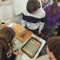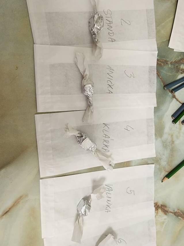 Po příchodu do muzea jsme rozdělili každou třídu na tři menší skupinky. To proto, aby se děti na jednotlivých stanovištích lépe vešly a vše si pohodlně vyzkoušely. Skupiny se postupně prostřídaly, takže si děti zkusily úplně všechno, co jsme pro ně připravili.