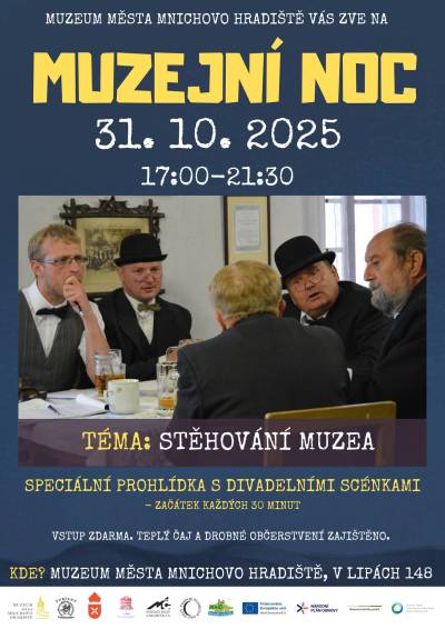 Během letošní Muzejní noci se tedy zpět v čase nejprve vydáme do končícího 19. století. V Praze se tenkrát konala národopisná výstava. Předměty, které se tam vystavovaly, jsou základem sbírek muzea v Mnichově Hradišti. V tomto období se několikrát hledaly vhodné prostory ve městě. Později se přeneseme do období poloviny 20. století, kdy bylo místní muzeum přestěhováno volných místností v budově zámku, je vedeno panem Janem Toušem a je spojeno s mnohými archeologickými průzkumy okolí. Dále nás čeká období až 90. let 20. stol. a muzeum pod vedením Hany Báčkové. Toto je nejen doba výtvarných výstav významných českých umělců v zámecké konírně, ale i doba, kdy se do muzea povinně chodilo na výstavy o místním rodáku Janu Švermovi. Posledními dvaceti lety existence muzea návštěvníky provede Jana Dumková. Zavzpomínáme na změny v expozicích za doby jejího vedení muzea, ale i na uskutečněné výstavy a akce. A co bude s muzeem dále? S plány do budoucna a stěhováním do jiné budovy vás seznámí Marie Janšová.