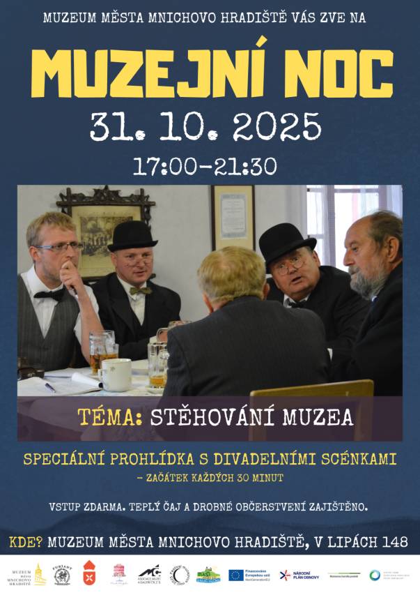 V pátek 31. 10. 2025 od 17:00 do 21:30 pro vás budou každou půlhodinu připraveny komentované prohlídky muzejních prostor. Půjde o speciální, netradiční prohlídky, které budou oživeny hranými scénkami. Společně si připomeneme příběh našeho muzea – od jeho vzniku na konci 19. století, přes přesun do zámecké budovy, éru významných výtvarných výstav, až po současnost. Podíváme se ale i do budoucnosti a seznámíme vás s plány na stěhování do nových prostor.