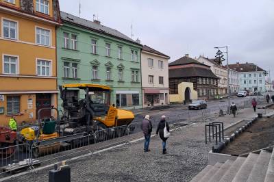 Zhotovitel, společnost SaM - silnice a mosty, právě v posledním úseku před náměstím dokončuje dláždění, včera a dnes provedl asfaltové vrstvy. V příštím týdnu, pokud to počasí dovolí bude proveden nástřik vodorovného značení, V polovině prosince by tak práce na velké investiční akci realizované městem (rekonstrukce uličních prostor) a Krajskou správou a údržbou Středočeského kraje (rekonstrukce vozovky) měly být skončeny. Po dlouhých měsících tak skončí veškerá omezení.