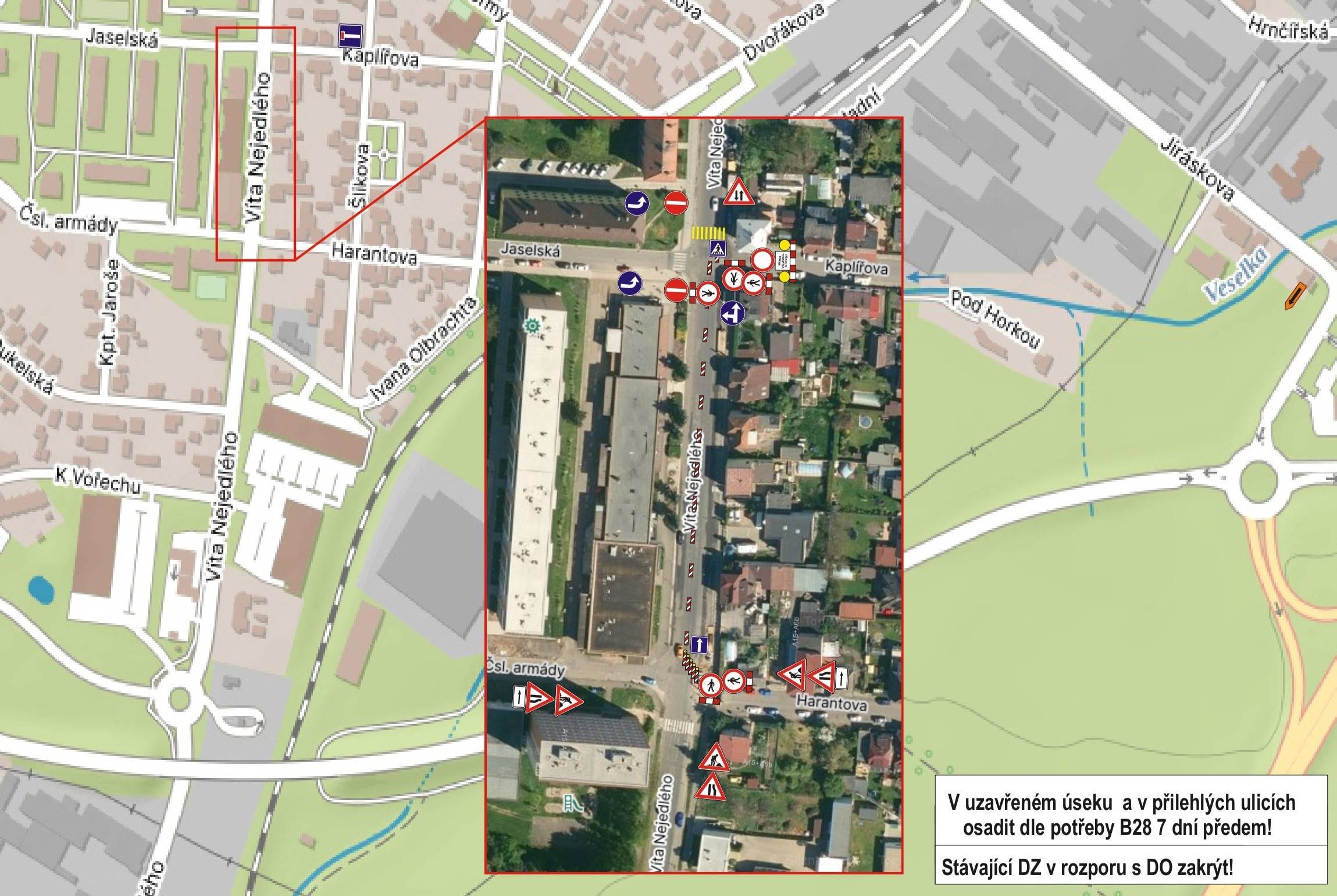 Další etapa revitalizace uličního prostoru ulice Víta Nejedlého měla probíhat od dnešního dne do 3. března. Z technických důvodů na straně zhotovitele se však zahájení prací posouvá o týden na 10. února. S tím souvisí i zavedení dopravních opatření, která budou rovněž platit od 10. února. Zhotovitel se v první letošní fázi pustí do jedné strany úseku mezi ulicemi Harantova a Kaplířova a následně se bude opět přesouvat přes silnici na druhou polovinu ulice. Volný jízdní pruh bude opět jednosměrně průjezdný směrem do centra města. Doporučená objízdná trasa z Hradiště směrem na Mladou Boleslav vede Jiráskovou ulicí.