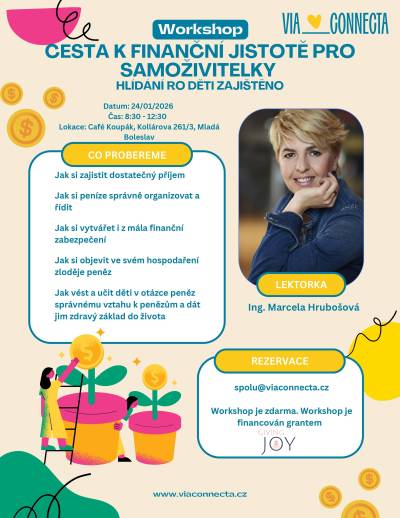 Být jedinou osobou, která nese finanční náklady domácnosti a zároveň se stará o děti, není jednoduché. Organizace Via Connecta se sídlem v Mladé Boleslavi nyní zve samoživitelky na workshop věnovaný právě financím a vytváření finanční rezervy.