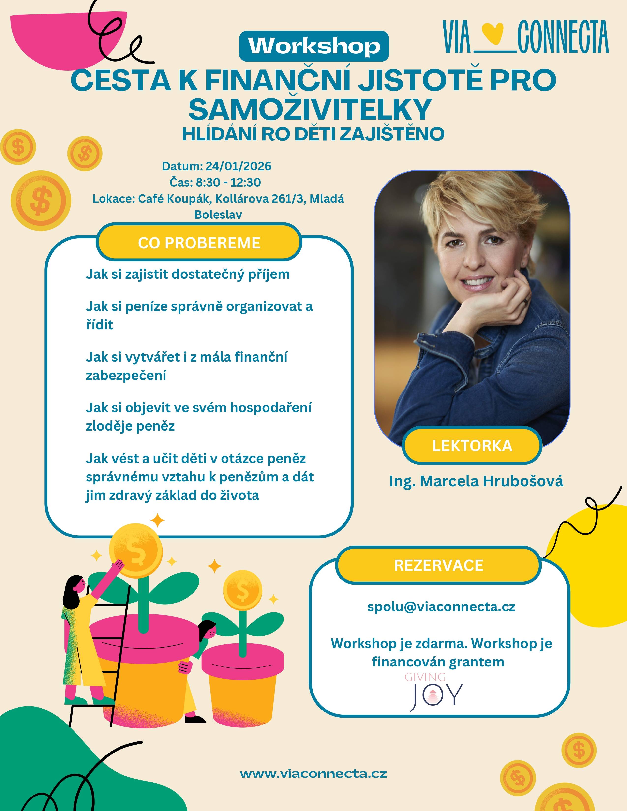Účast na setkání je zdarma díky grantu nadace Giving Joy, místo na workshopu je možné rezervovat na e-mailu spolu@viaconnecta.cz.