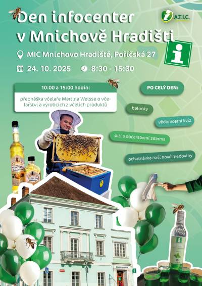 Městské informační centrum Mnichovo Hradiště zve všechny návštěvníky i místní obyvatele na Den infocenter, který se uskuteční v pátek 24. října 2025. Akce se koná v rámci Týdne turistických informačních center, jenž každoročně pořádá Asociace turistických informačních center (ATIC) u příležitosti světového dne pro rozvoj informací.