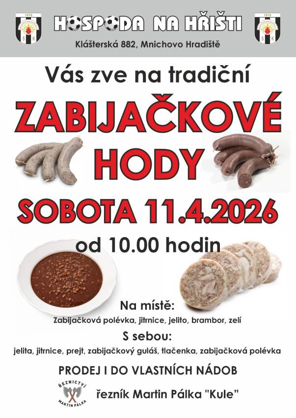 SOBOTA - Milovníci zabíjačkových pochoutek nemusí v sobotu vařit. V areálu Hospody Na Hřišti budou probíhat zabíjačkové hody a na místě bude možné jak posvačit a poobědvat, tak nakoupit speciality mistra řezníka s sebou. S muzejníky můžete vyrazit na Cestu za obrazy - tematickou komentovanou procházku s Muzeem města Mnichovo Hradiště, v rámci níž poprvé zamíříte na místa, která inspirovala místní umělce. Start na Kamínkách! Živo bude v areálu ZUŠ, kde budou probíhat bleší trhy. V jejich průběhu můžete rovněž navštívit aktuální výstavu Skloň(me) se ke sklu v galerii ZUŠ Konírna, která představuje tvorbu sklářů manželů Urbanových.