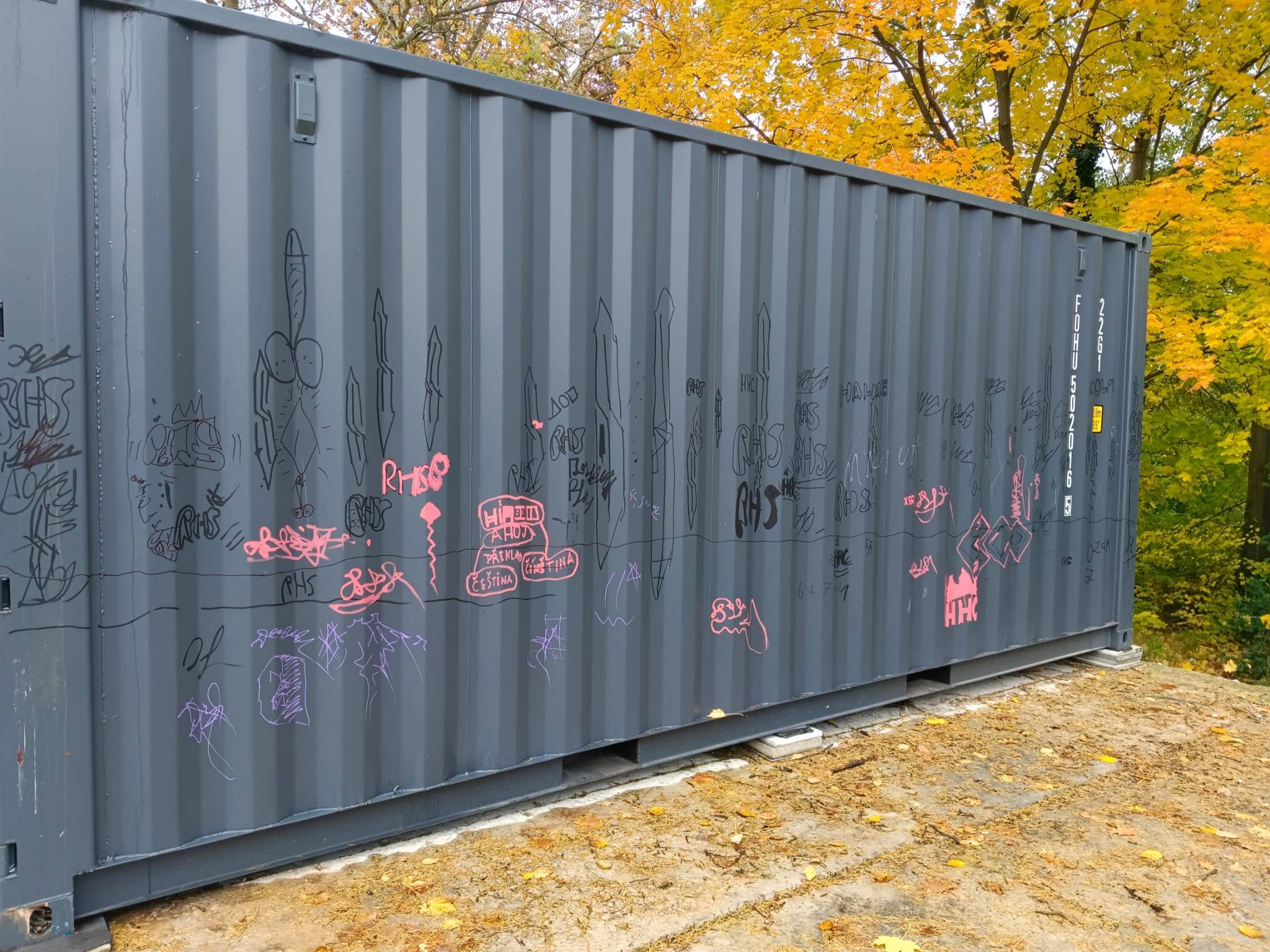 Hned druhý den, v sobotu, se autoři malůvek pustili do odstraňování nápisů a čmáranic. Zatímco značky se vyčistit podařilo a poškozená zůstala pouze jedna ohnutá značka, při odstraňování "výzdoby" kontejneru došlo k poškození jeho nátěru. Kontejner tak mladíci po domluvě s městem opatří novým nátěrem.