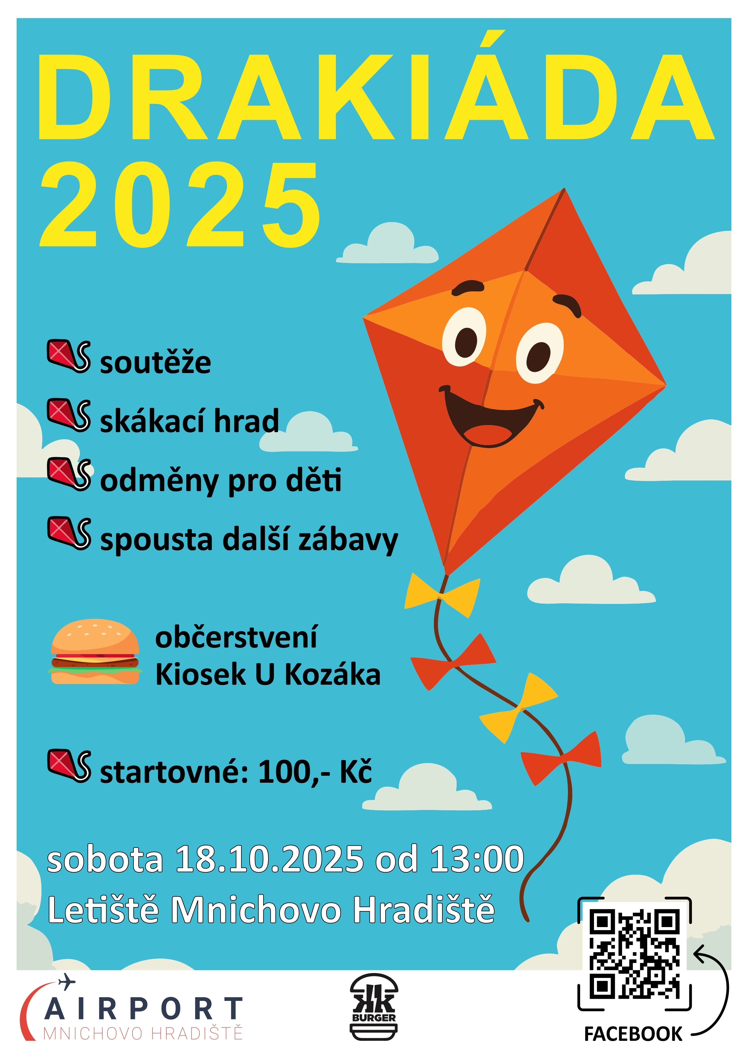 Nemáte-li jiné plány na sobotní odpoledne, dorazte s celou rodinou na velkou drakiádu na Letišti Mnichovo Hradiště. Vedle soutěže o nejlepšího draka bude pro děti připraven skákací hrad, jízdy na koních nebo řada dalších soutěží. Na místě bude rovněž dětská dílnička, kde si zájemci budou mít možnost draka sami vyrobit, to pro případ, že by snad někdo dorazil bez draka, chtěl k nebi vyslat další kousek nebo třeba o draka při náhlém poryvu větru přišel.