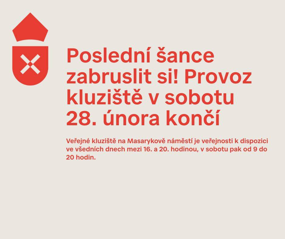 Premiérová sezóna veřejného kluziště na Masarykově náměstí se chýlí ke konci. Zájemci mohou na umělou ledovou plochu vyrazit už pouze tento týden, vždy v odpoledních hodinách mezi 16. a 20. hodinou, naposledy pak v sobotu 28. února 2026 od 9 do 20 hodin. Následně bude kluziště po třech měsících provozu demontováno.